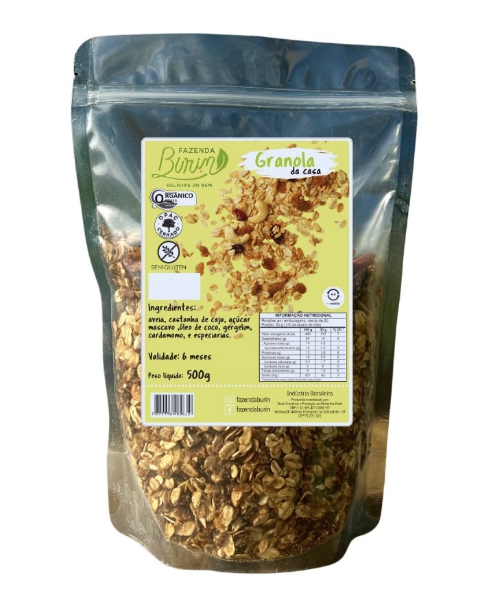 Ingredientes: Aveia, castanha de caju, açúcar mascavo, óleo de coco, gergelim, cardamomo e especiarias.